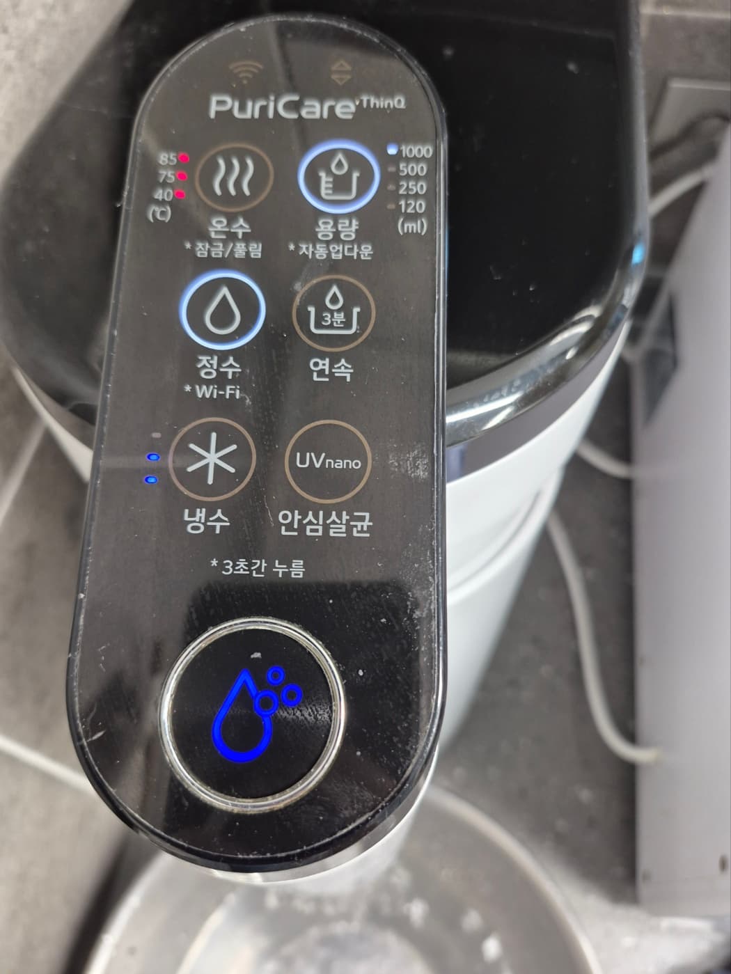 필터를 교체했어도 교체주기가 지났기 때문에 아직도 출수구 버튼은 주황색이에요